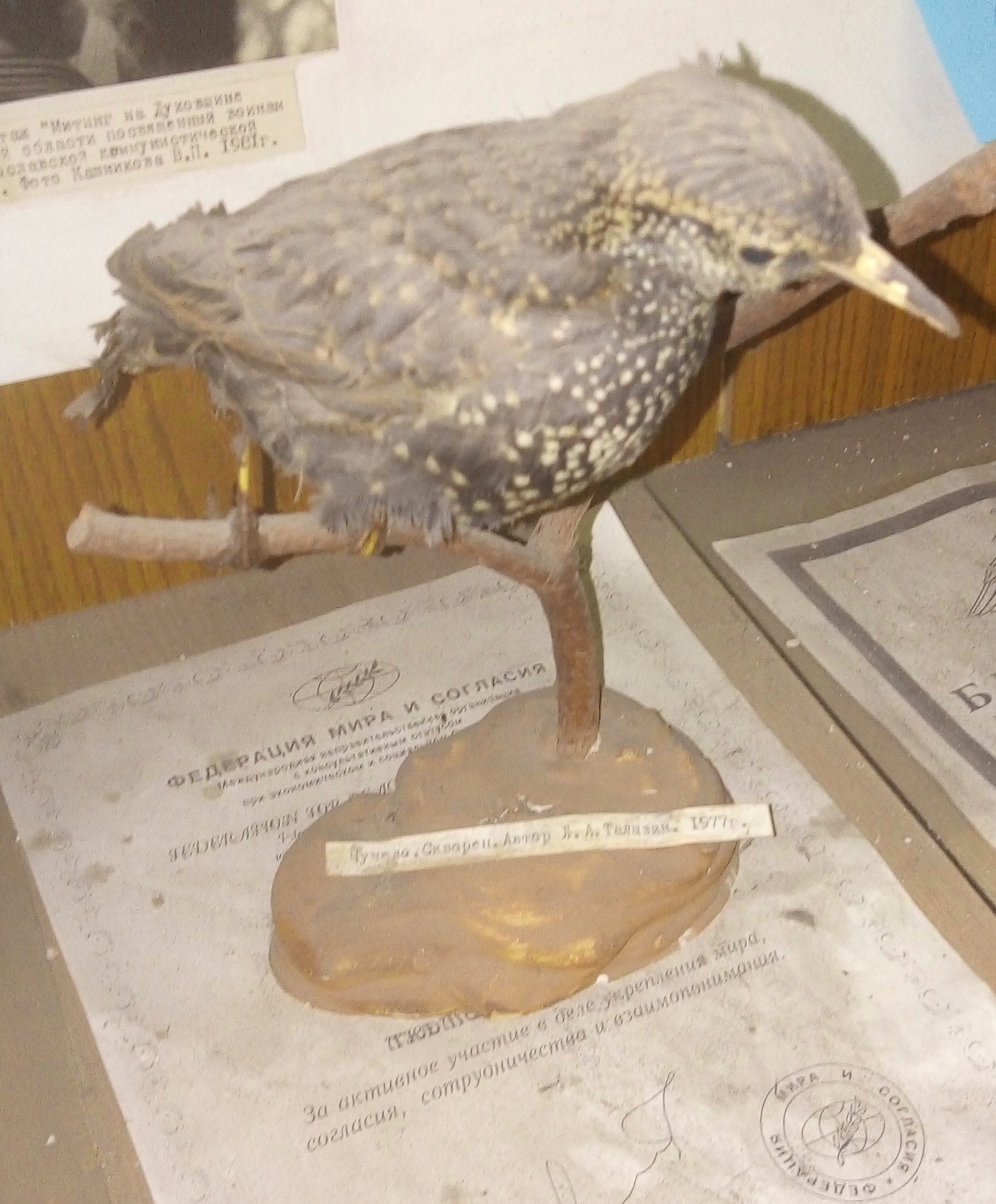 Чучело скворца Талызин ЛА 1977г.