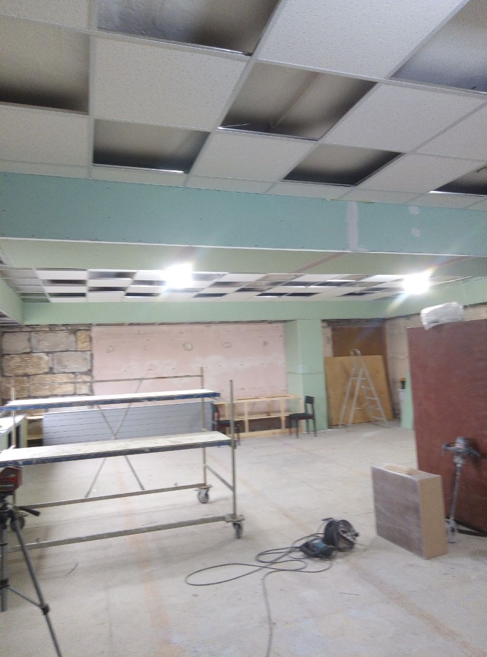 Еще темно, но уже стены и потолок начинают преображаться.